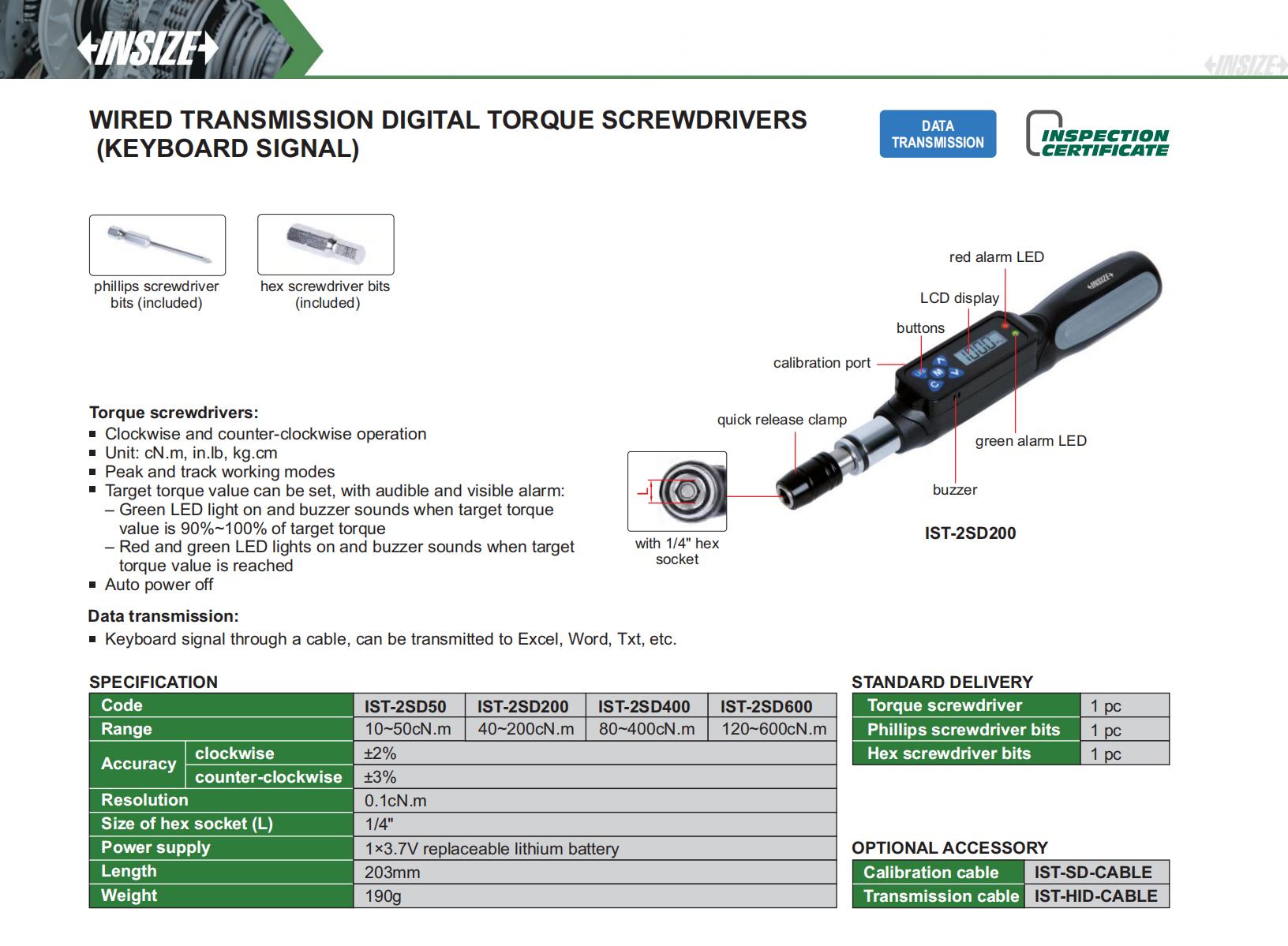 Wired Transmission Digital Torque Screwdrivers (Keyboard Signal)