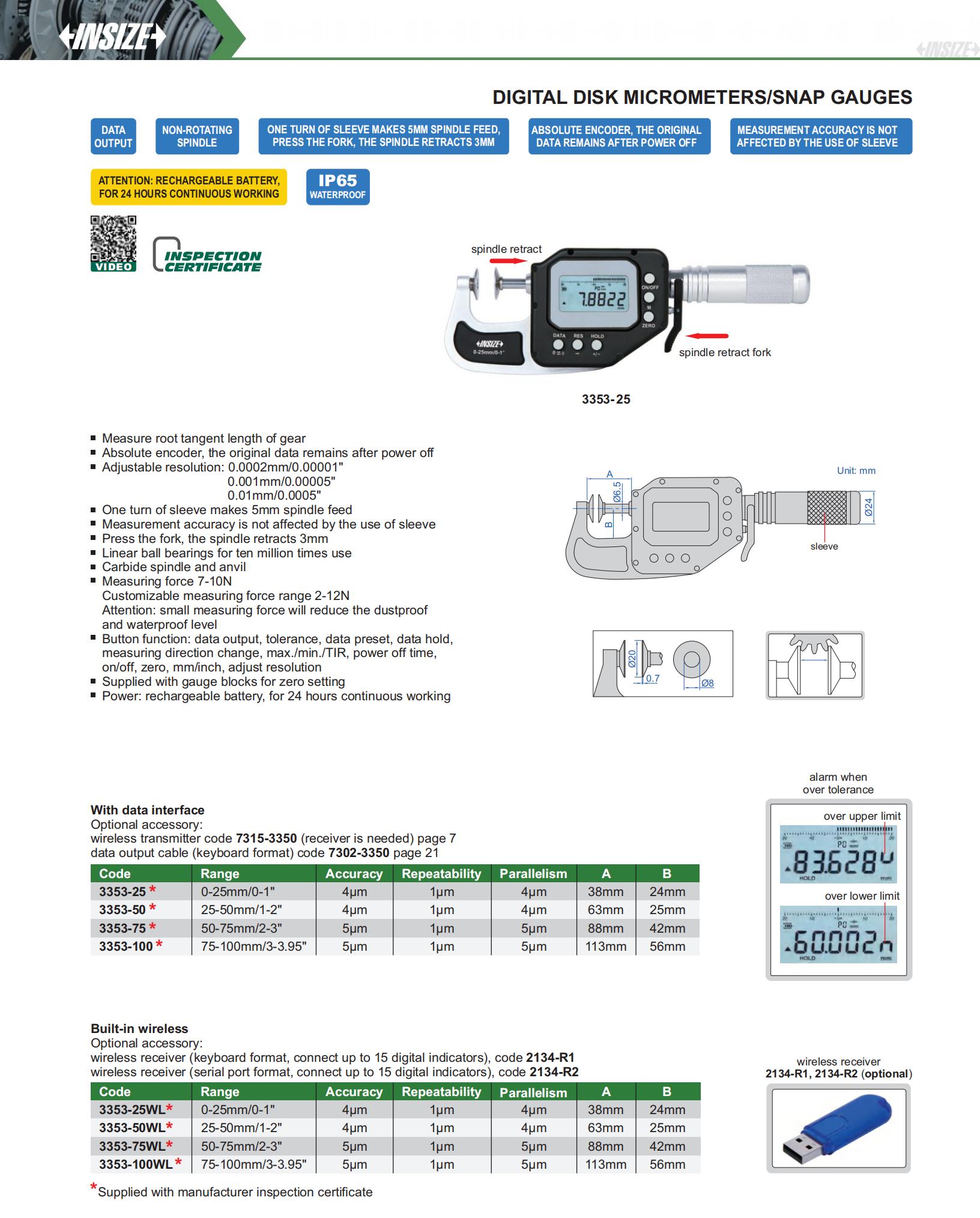 Digital Disk Micrometers/Snap Gauges